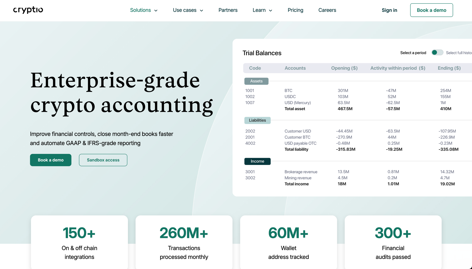 Cryptio is an accounting platform built for institutions that need audit-ready reporting and seamless integration with mainstream accounting systems.