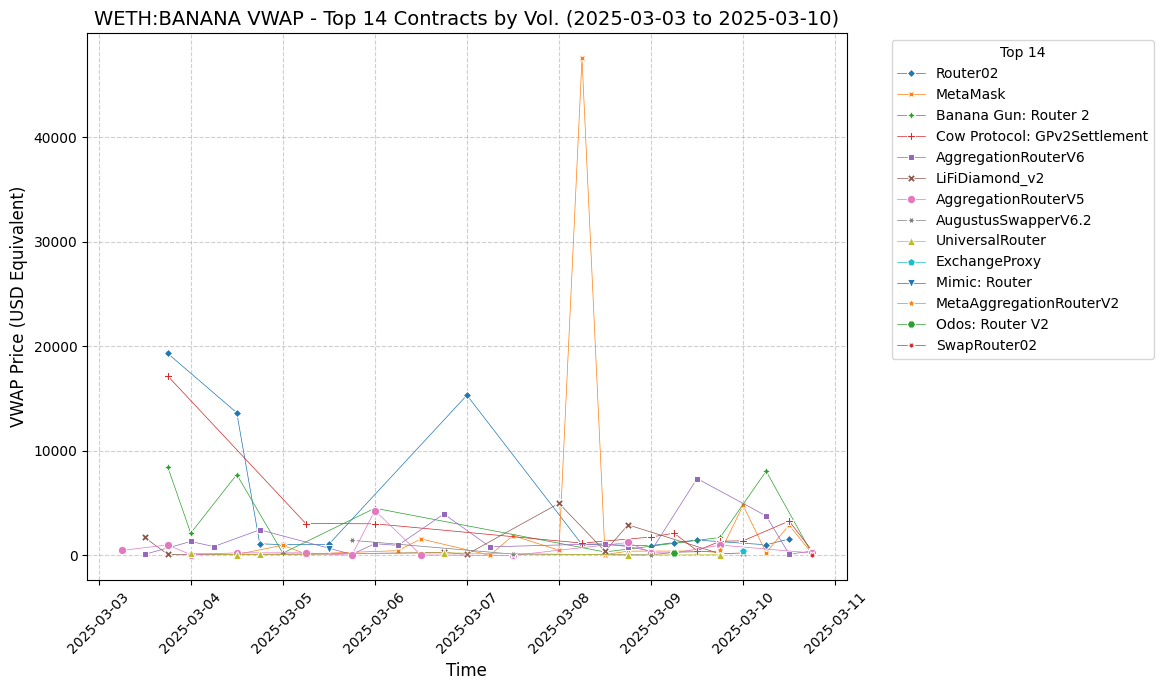 Aggregator execution quality varies by token, timeframe and market conditions: For the same token (BANANA memecoin), the VWAP price diverged significantly within the span of a week, across more than 10 different aggregators.