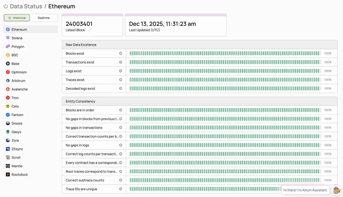 Provide regulators and stakeholders with verified metrics on digital asset activity, market dynamics, and compliance —— backed by data quality that passes audits.