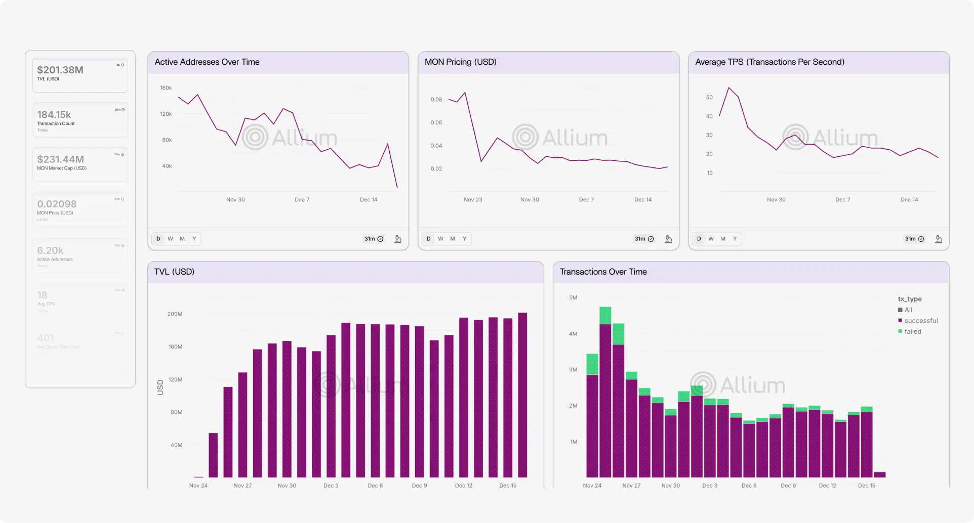 Allium powers Visa's authoritative stablecoin dashboard, tracking fiat-backed stablecoin volumes, supply, and transfers across chains —— now the industry-cited source for institutional stablecoin analytics.